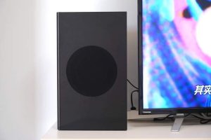 In terms of the appearance of the system hardware, the innovative Stage V2 can be said to continue to use a generation of Stage program, by a 2.1 bar speaker and a subwoofer combination, specifically list their relevant parameters, the size of the bar speaker is 78mm * 680mm * 100mm, the subwoofer is 423mm * 116mm * 250mm, the volume is moderate, in Figure In the figure we can see the TV and Stage V2 sound system together on an ordinary table without problems. Bar speaker body: weight 2 kg, the subwoofer weighs 3.3 kg, it is not very difficult to carry.